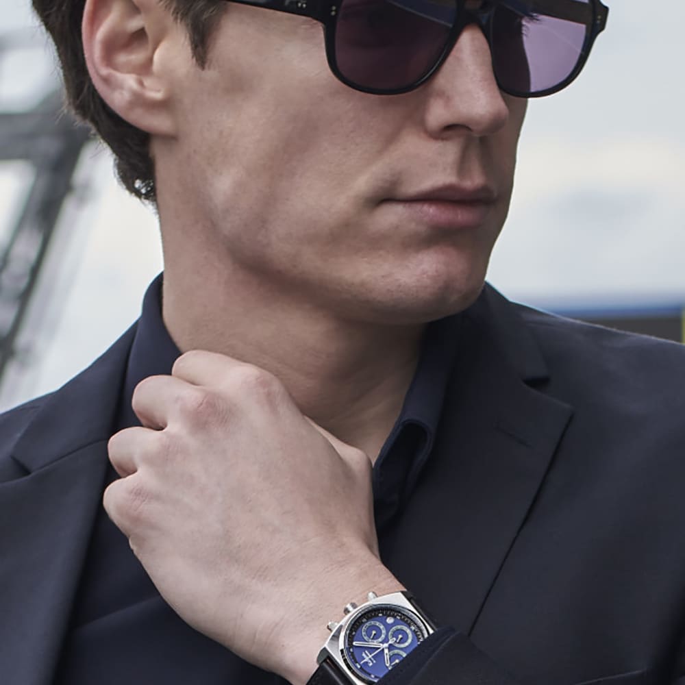 Wiele osób pyta: zaczynasz studia magisterskie z języka francuskiego? To proste. Męski zegarek Kelton RC 24 Chrono Meca-Quartz Blue został zaprojektowany i wykonany przez rzemieślników we Francji. Oto druga opinia na temat szczegółów. Spójrz na moje indeksy i paski – są pokryte Super-LumiNova, dzięki czemu możesz odczytać godzinę nawet w przyćmionym świetle kina lub podczas wieczornych recytacji poezji na trasie. Czarny skórzany pasek z perforacjami w stylu rallye to prosta kompozycja inspirowana muzyką klasyczną, idealnie pasująca do formalnego dress code'u.
