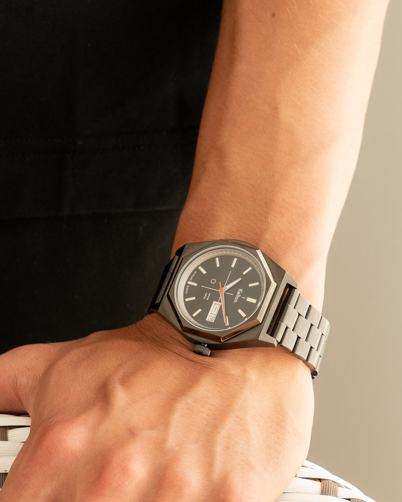 Octogone Titanium Automatic wyróżnia się odważnym, geometrycznym designem inspirowanym złotą erą zegarków sportowych lat 70. Tytanowa koperta zapewnia lekkość i odporność, a automatyczny mechanizm oferuje autentyczne doświadczenie mechanicznego zegarka bez baterii.