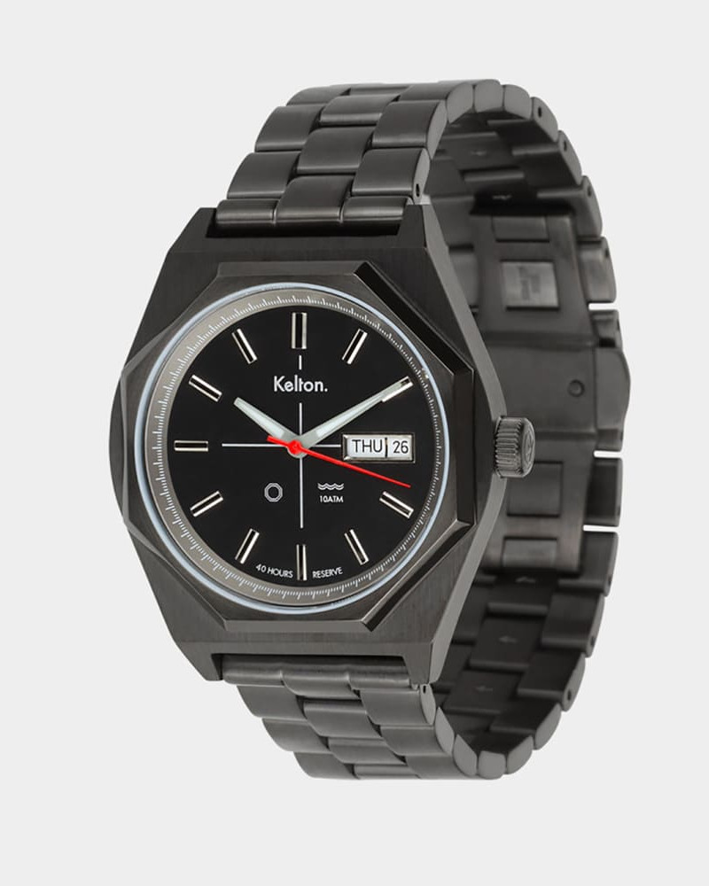 Kelton Octogone Titan Automatic zegarek titanowy w stylu retro-vintage sport czarny