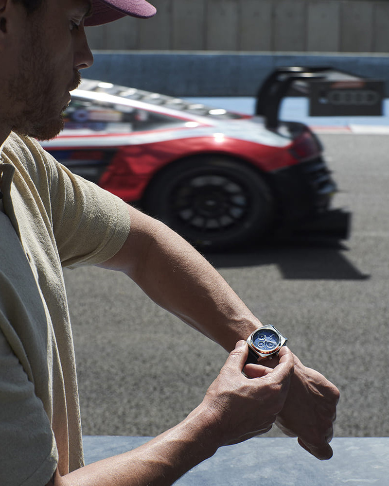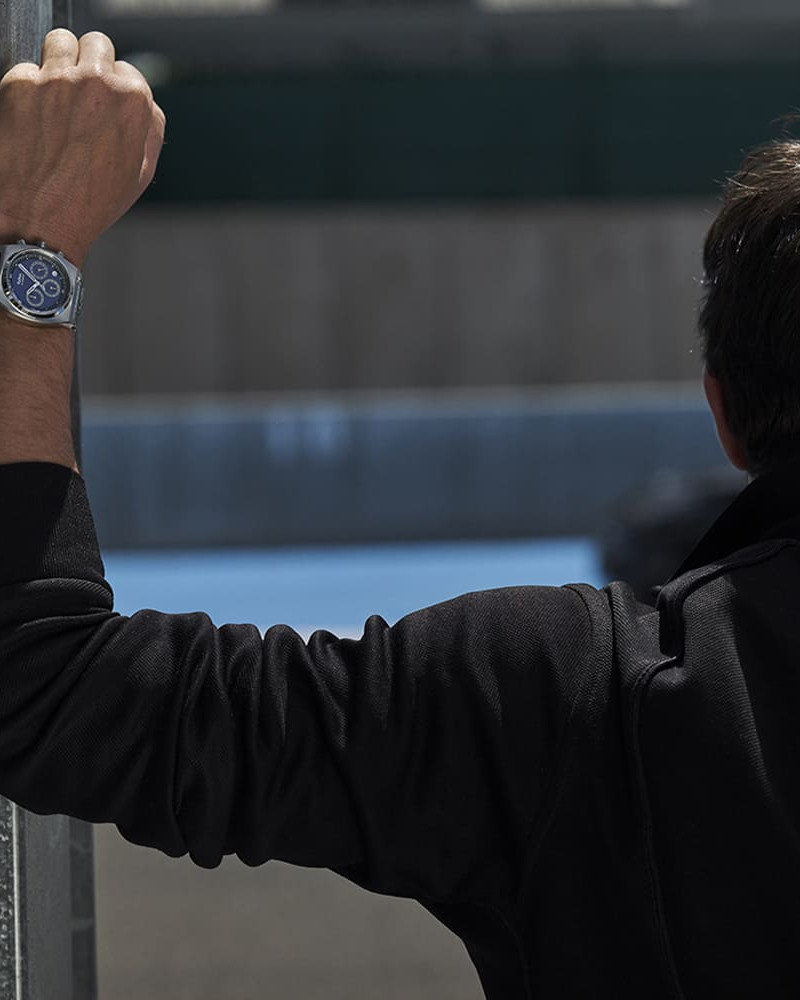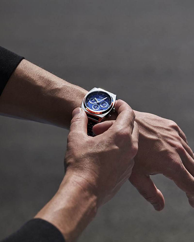 RC 24 Chrono to wyraz sportowego stylu z nutą elegancji, w którym techniczna funkcjonalność łączy się z klasycznym designem. Niebieska tarcza kontrastuje ze stalową bransoletą Jubilee, tworząc uniwersalny model idealny zarówno do codziennych, jak i bardziej dynamicznych stylizacji.