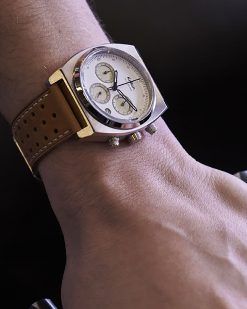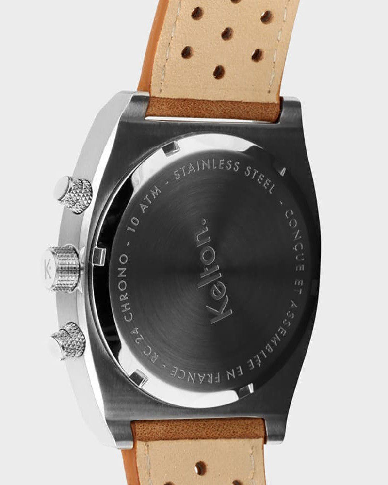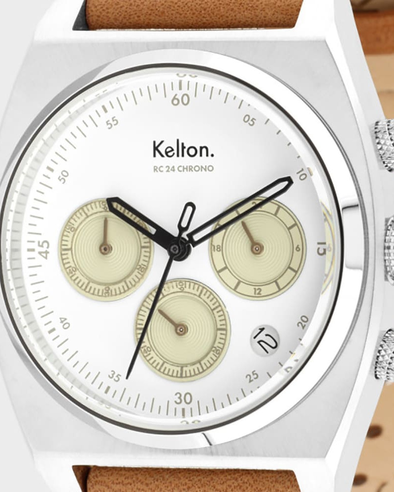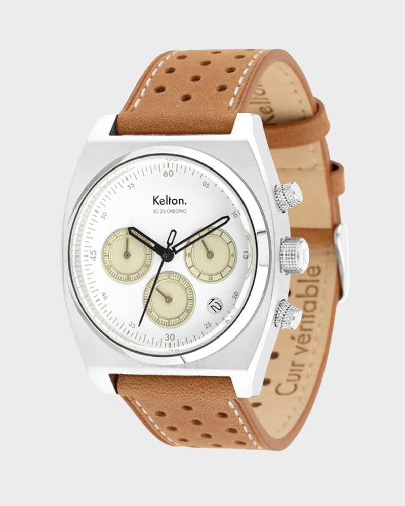 Kelton RC 24 Chrono méca-quartz White – zegarek sportowy białą tarczą + brązowy pasek