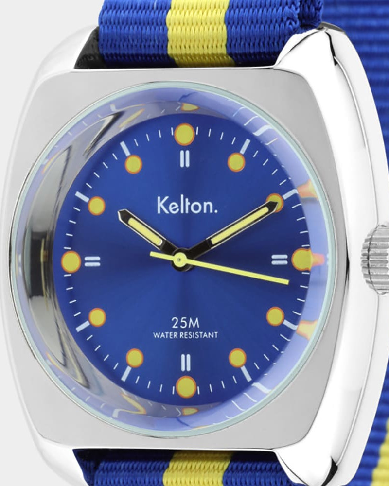 Kelton RC2 Nato Blue Yellow – modny zegarek retro kolorowy niebiesko-żółty unisex ✔️ Francuski design ✔️ Pasek NATO ✔️ Niezawodny mechanizm ✔️ 2-letnia gwarancja producenta.