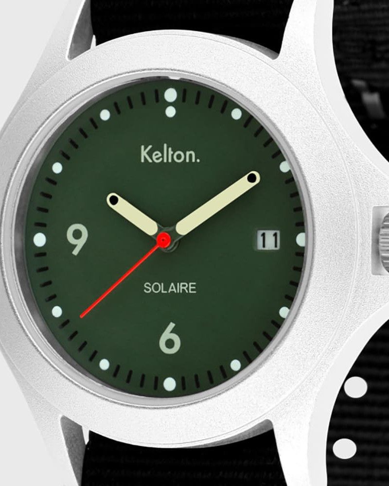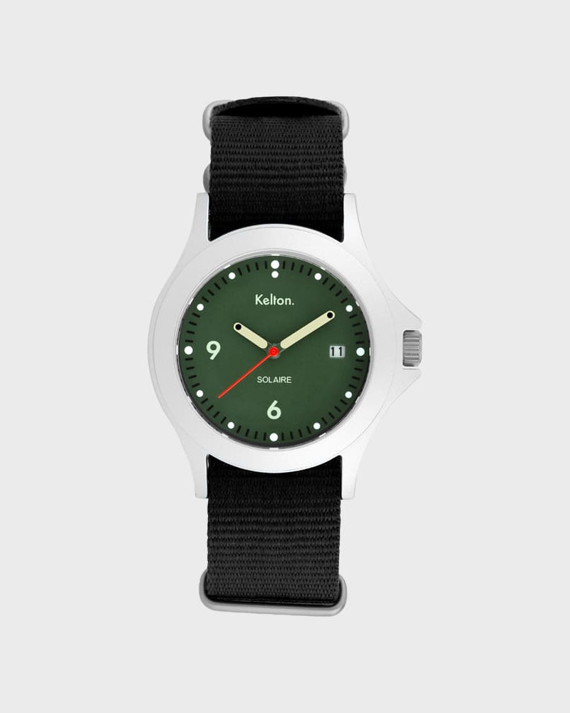 Kelton Solaire Soleil Vert Nato Noir sportowy zegarek solarny zieloną tarczą + czarny pasek