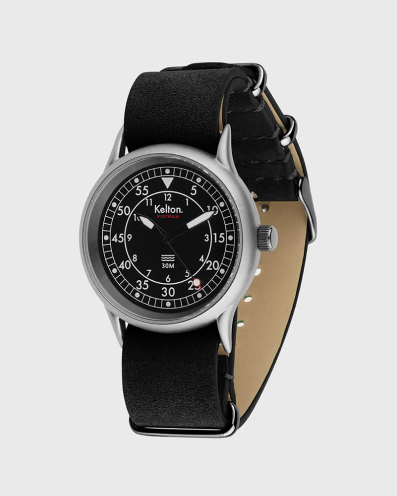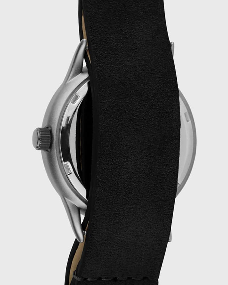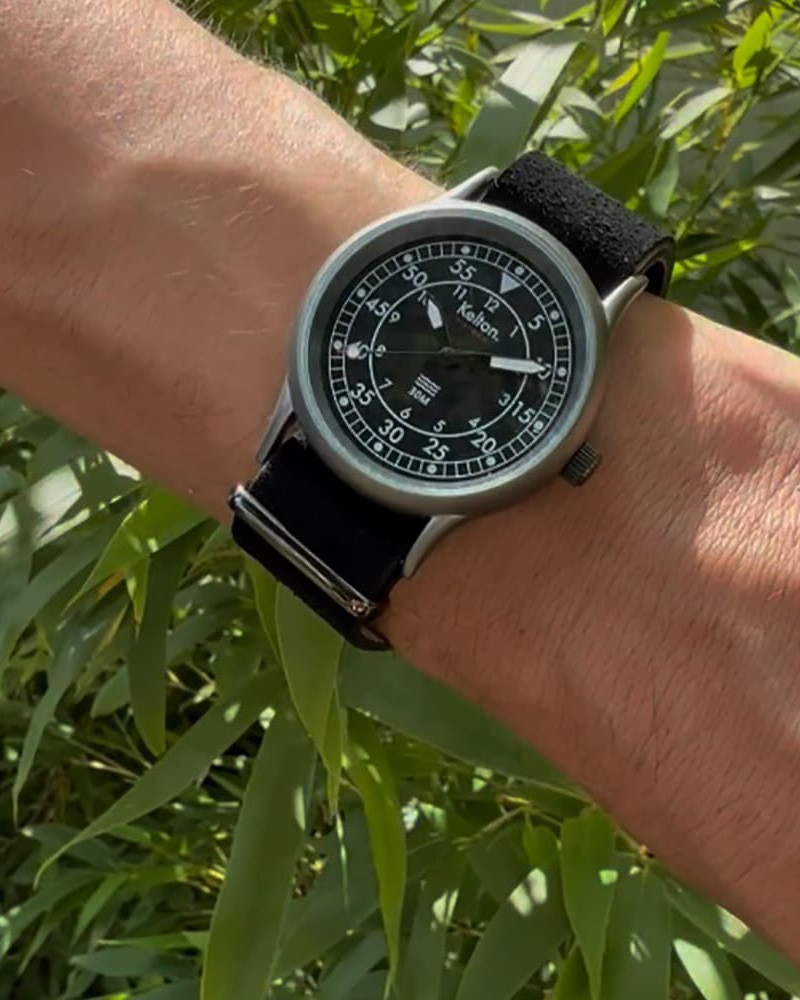 Czarny pasek NATO z naturalnej skóry zapewnia trwałość i komfort noszenia, a luminescencyjne indeksy i wskazówki gwarantują czytelność nawet w słabym świetle. Piaskowana koperta i mineralne szkło dodają wytrzymałości, a minimalistyczny, militarny design łączy funkcjonalność z estetyką, która nigdy nie wychodzi z mody.