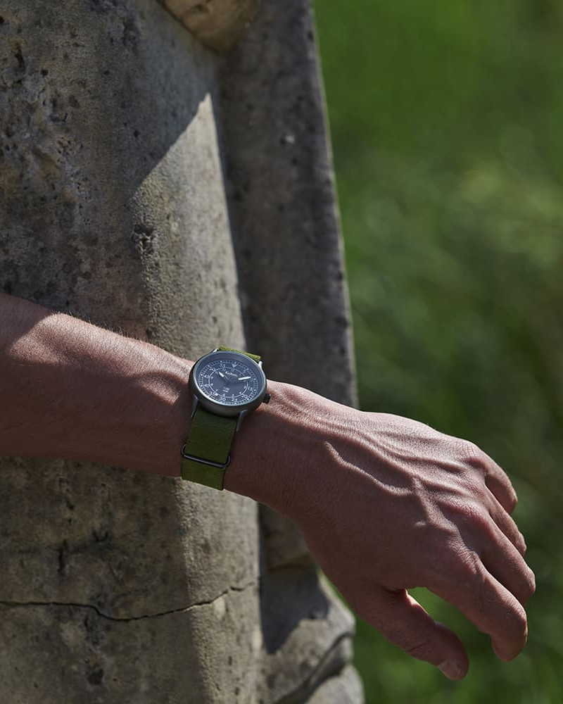 Model VTNM to klasyczny męski zegarek mechaniczny o wojskowej stylistyce, zaprojektowany i składany we Francji z dbałością o każdy detal. Wyposażony w mechanizm ręcznego naciągu P 2650, oferuje autentyczne doświadczenie zegarmistrzowskie bez potrzeby baterii.